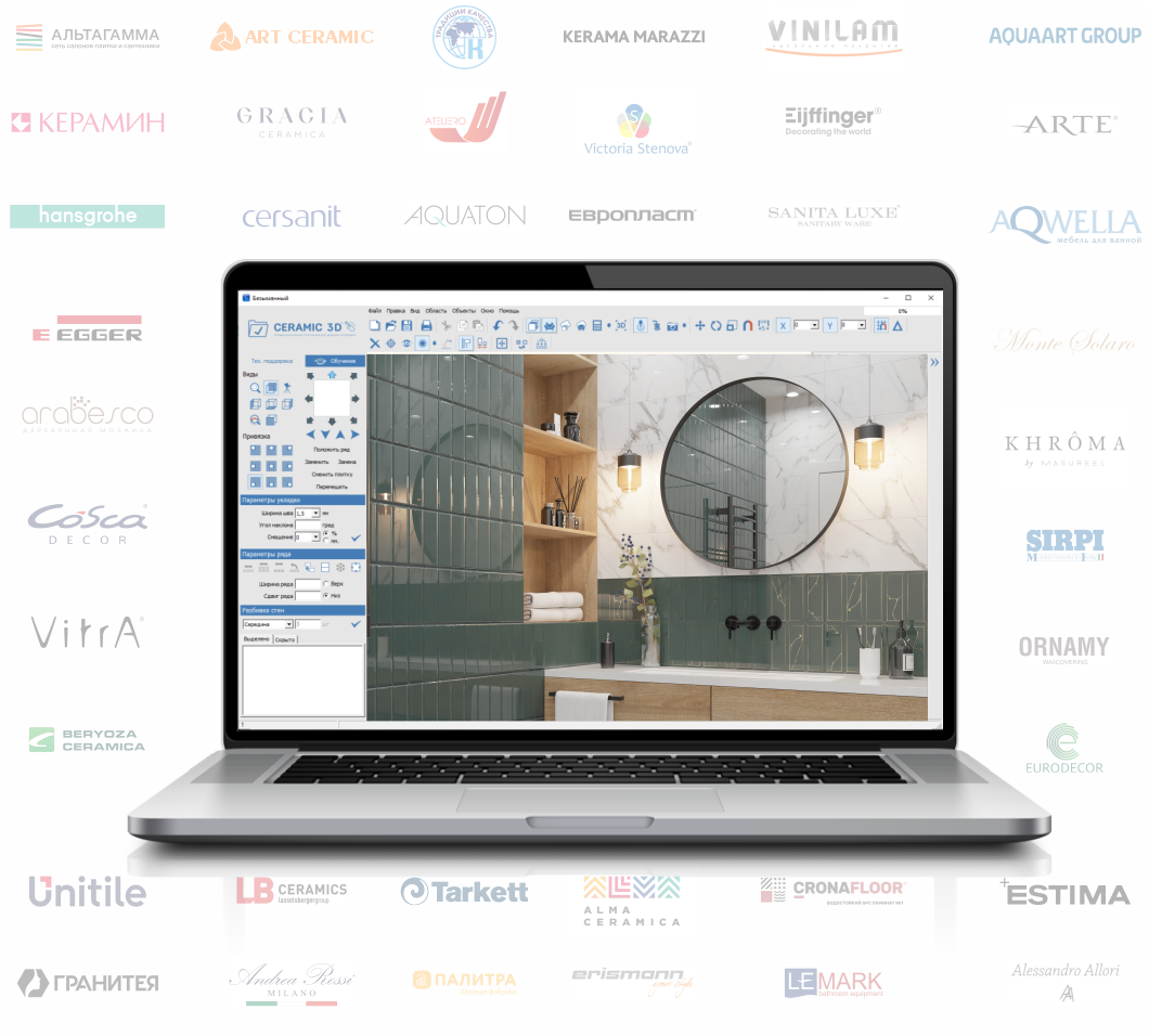 Ceramic 3D - программа создаваемая и обновляемая под стандарты ниши и с устранением всех недостатков других программ. Идеальная программа для создания дизайн проектов в любых интерьерах.